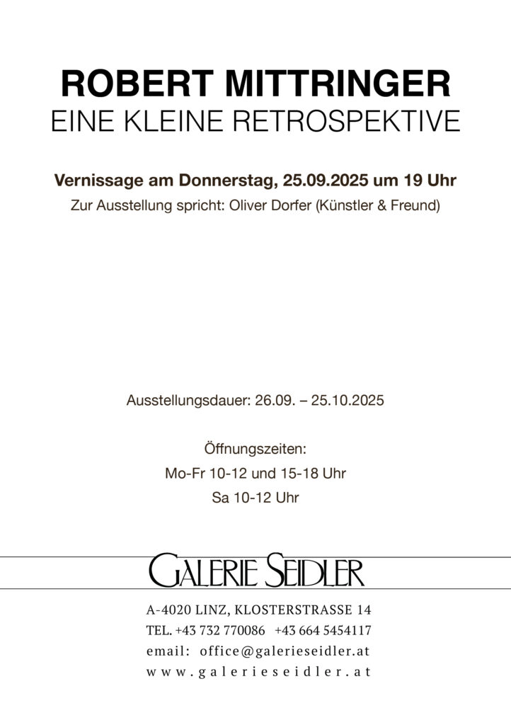 Robert Mittringer – eine kleine Retrospektive, Eröffnung am Donnerstag dem 25.9.2025