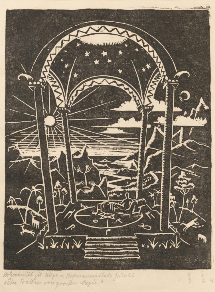 orig. Holzschnitt zu Hugo von Hofmannsthals Gedicht „Ein Traum von großer Magie“
