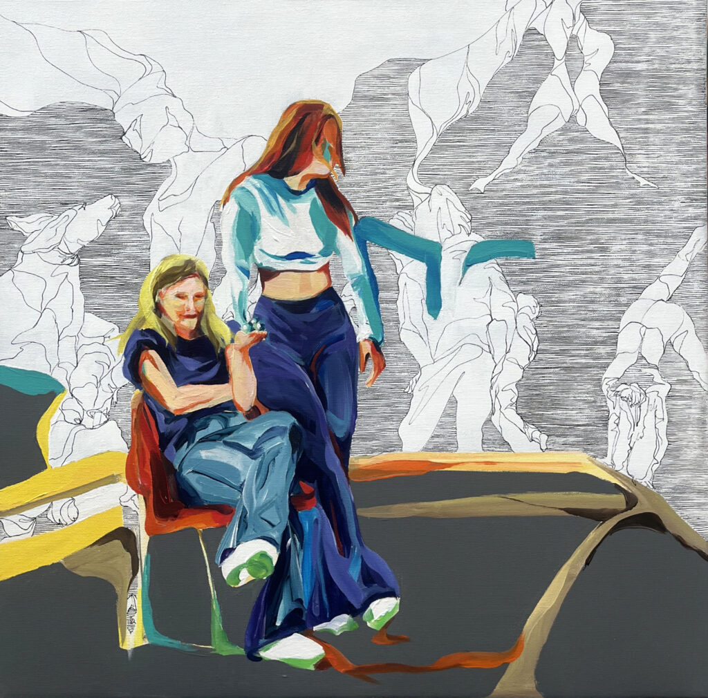 Hinterglas-Zeichnung/Malerei im Objektrahmen – Tusche & Pigmentstift, 2019. 30 x 40 cm